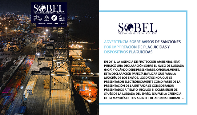 Advertencia sobre Avisos de Sanciones por Importación de Plaguicidas y Dispositivos Plaguicidas - Sobel Network Shipping Co., Inc.