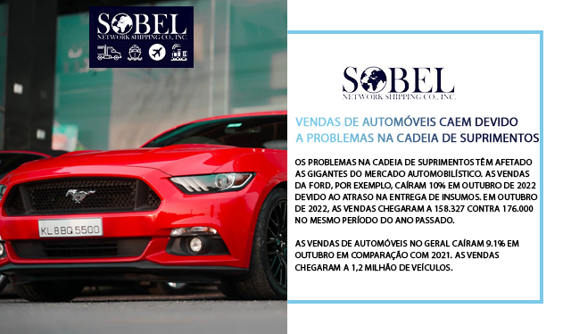 Os problemas na cadeia de suprimentos têm afetado as gigantes do mercado automobilístico. As vendas da Ford, por exemplo, caíram 10% em outubro de 2022 devido ao atraso na entrega