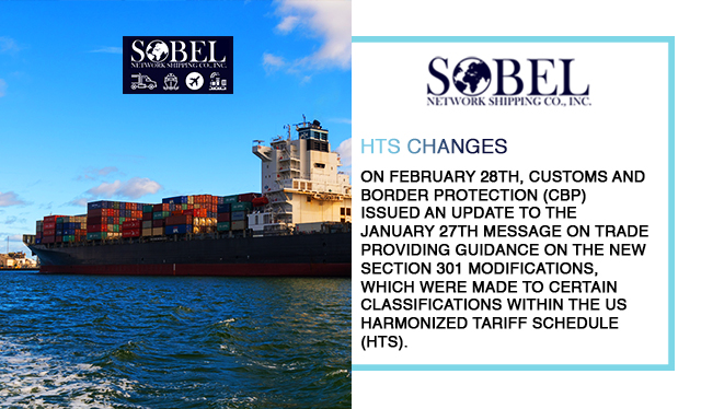 On February 28th, Customs and Border Protection (CBP) issued an update to the January 27th message on trade providing guidance on the new Section 301 modifications, which were made to