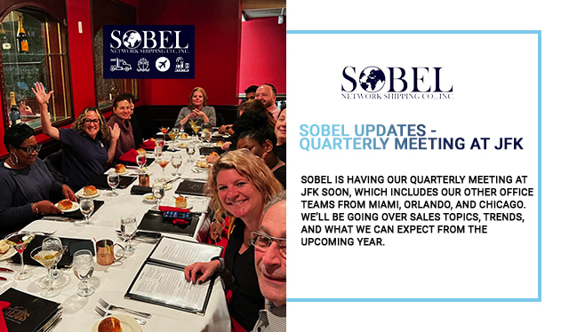 Sobel is having our quarterly meeting at JFK soon, which includes our other office teams from Miami, Orlando, and Chicago. We’ll be going over sales topics, trends, and what we