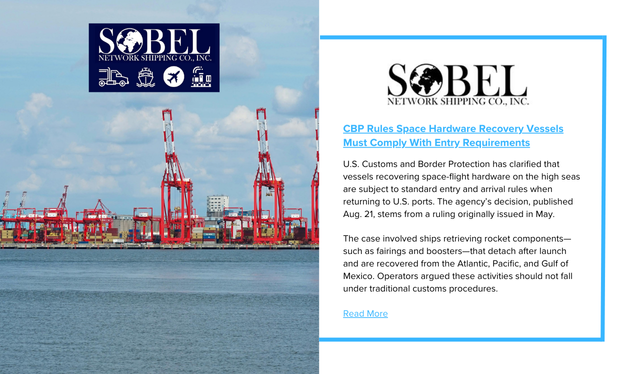 U.S. Customs and Border Protection (CBP) has clarified that vessels retrieving spaceflight hardware from the high seas are subject to formal entry and arrival requirements under federal law. According to