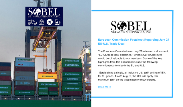 The European Commission on July 29 released a document, “EU-US trade deal explained,” which NCBFAA believes would be of valuable to our members. Some of the key highlights from this