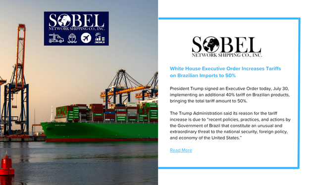President Trump signed an Executive Order today, July 30, implementing an additional 40% tariff on Brazilian products, bringing the total tariff amount to 50%. The Trump Administration said its reason