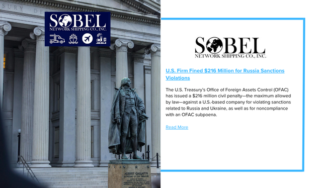 The U.S. Treasury’s Office of Foreign Assets Control (OFAC) has issued a $216 million civil penalty—the maximum allowed by law—against a U.S.-based company for violating sanctions related to Russia and