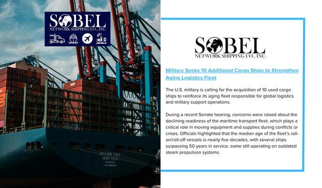 The U.S. military is calling for the acquisition of 10 used cargo ships to reinforce its aging fleet responsible for global logistics and military support operations. During a recent Senate