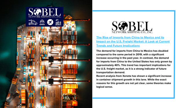 The demand for imports from China to Mexico has doubled, compared to the same period in 2019. This surge in import bookings has been primarily seen in the past year,