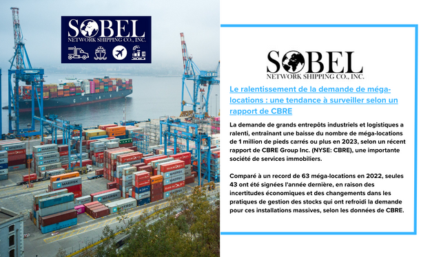 La demande de grands entrepôts industriels et logistiques a ralenti, entraînant une baisse du nombre de méga-locations de 1 million de pieds carrés ou plus en 2023, selon un récent