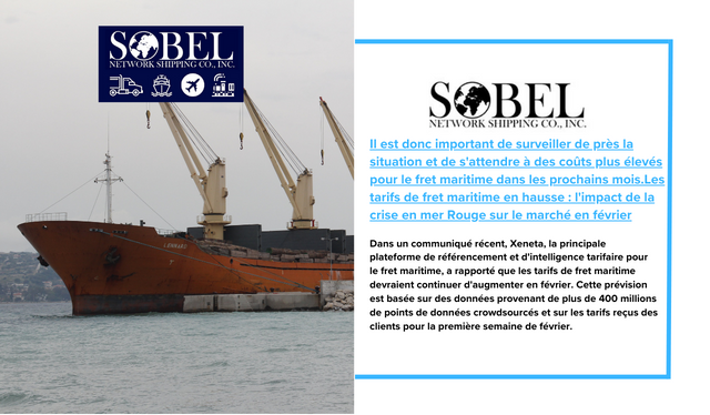 Les tarifs de fret maritime devraient encore augmenter en février Dans un communiqué récent, Xeneta, la principale plateforme de référencement et d'intelligence tarifaire pour le fret maritime, a rapporté que