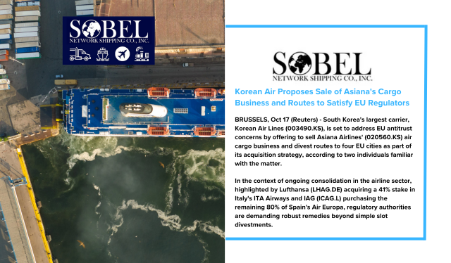 BRUSSELS, Oct 17 (Reuters) - South Korea's largest carrier, Korean Air Lines (003490.KS), is set to address EU antitrust concerns by offering to sell Asiana Airlines' (020560.KS) air cargo business