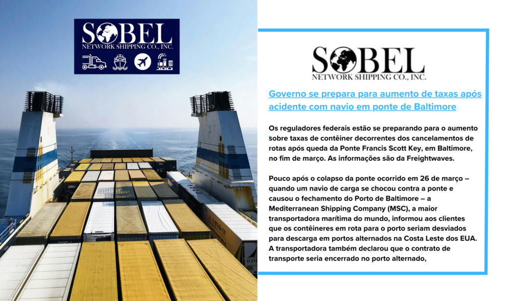 WASHINGTON — Os reguladores federais estão se preparando para o aumento sobre taxas de contêiner decorrentes dos cancelamentos de rotas após queda da Ponte Francis Scott Key, em Baltimore, no
