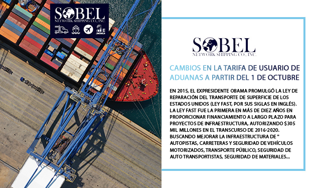Cambios en la tarifa de usuario de aduanas a partir del 1 de octubre - Sobel Network Shipping Co., Inc.