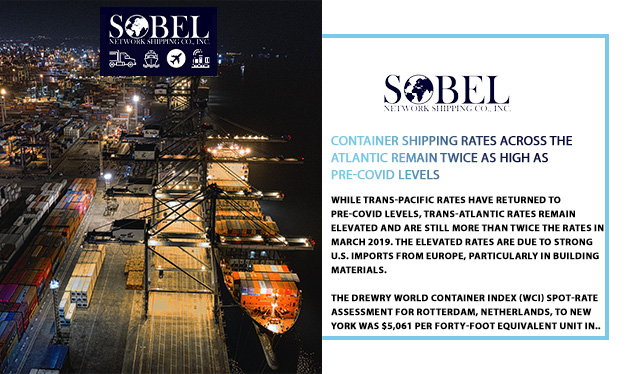 While trans-Pacific rates have returned to pre-COVID levels, trans-Atlantic rates remain elevated and are still more than twice the rates in March 2019. The elevated rates are due to strong U.S. imports from Europe, particularly in building materials.