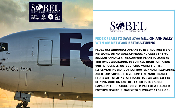 FedEx has announced plans to restructure its air network, with a goal of reducing costs by $700 million annually. The company plans to achieve this by downgrading to surface transportation where possible, outsourcing more flights, implementing more direct routes and streamlining ancillary support functions like maintenance. FedEx will also invest less in its own aircraft by relying more on partner carriers for surge capacity. The restructuring is part of a broader enterprisewide initiative to eliminate $4 billion in structural costs and boost profitability by the end of fiscal year 2025.