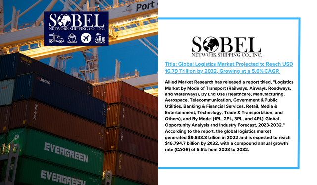 Global Logistics Market Projected to Reach USD 16.79 Trillion by 2032 with a 5.6% CAGR | Allied Market Research - Sobel Network Shipping Co., Inc.