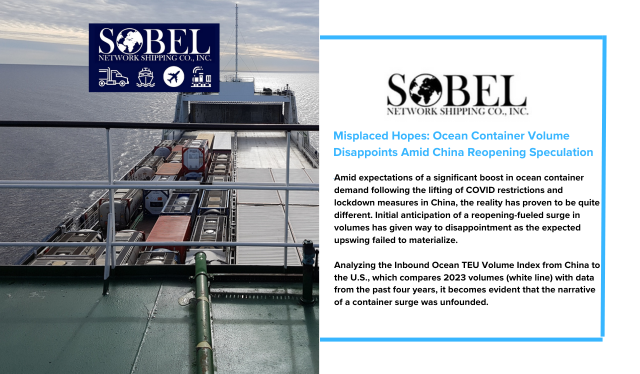 Amid expectations of a significant boost in ocean container demand following the lifting of COVID restrictions and lockdown measures in China, the reality has proven to be quite different. Initial anticipation of a reopening-fueled surge in volumes has given way to disappointment as the expected upswing failed to materialize.