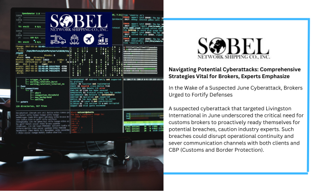 A suspected cyberattack that targeted Livingston International in June underscored the critical need for customs brokers to proactively ready themselves for potential breaches, caution industry experts. Such breaches could disrupt operational continuity and sever communication channels with both clients and CBP (Customs and Border Protection). In interviews, professionals in the field emphasized the necessity for brokers to construct meticulous response plans, which might encompass enlisting subcontractors, informing customers promptly, and swiftly notifying federal agencies.