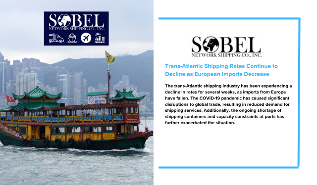 The trans-Atlantic shipping industry has been experiencing a decline in rates for several weeks, as imports from Europe have fallen. The COVID-19 pandemic has caused significant disruptions to global trade, resulting in reduced demand for shipping services. Additionally, the ongoing shortage of shipping containers and capacity constraints at ports has further exacerbated the situation.