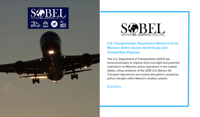 U.S. Transportation Department Moves to Curb Mexican Airline Access Amid Cargo and Competition Disputes - Sobel Network Shipping Co., Inc.