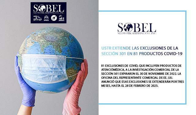 81 exclusiones de COVID, que incluyen productos de atenciómédica, a la investigación comercial de la Sección 301 expiraron el 30 de noviembre de 2022. La Oficina del Representante Comercial de EE. UU. anunció que esas exclusiones se extenderán por tres meses, hasta el 28 de febrero de 2023.