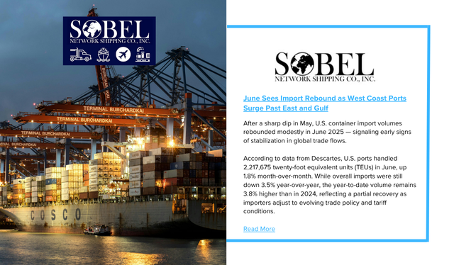 After a sharp dip in May, U.S. container import volumes rebounded modestly in June 2025 — signaling early signs of stabilization in global trade flows. According to data from Descartes,