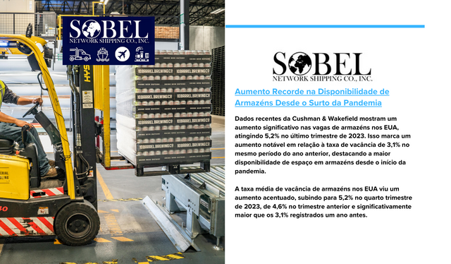 Dados recentes da Cushman & Wakefield mostram um aumento significativo nas vagas de armazéns nos EUA, atingindo 5,2% no último trimestre de 2023. Isso marca um aumento notável em relação