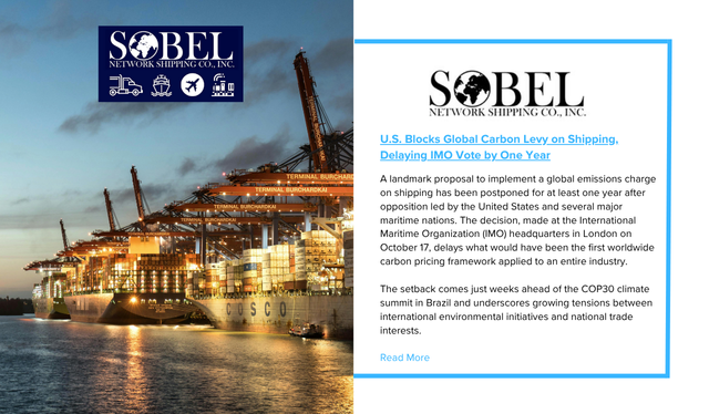 U.S. Blocks Global Carbon Levy on Shipping, Delaying IMO Vote by One Year