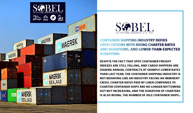 Despite the fact that spot container freight indexes are still falling, and cargo shippers are signing annual contracts at sharply lower rates than last year, the container shipping industry is not behaving like an industry facing an imminent crisis. Charter rates paid by liner companies to charter container ships are no longer bottoming out but increasing, and the duration of charters is also rising. The number of idle container ships has decreased in recent weeks, and liner companies continue to buy more vessels in the secondhand market. The expected tsunami of ship recycling has yet to occur, and the number of older ships demolished year-to-date is lower than expected. Container lines continue to place orders at shipyards for more vessels, despite the fact that the container ship orderbook reached an all-time high in terms of TEUs scheduled for delivery.