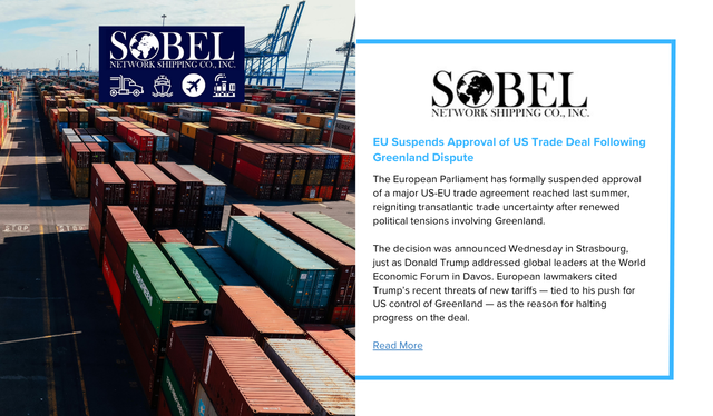 EU Suspends Approval of US Trade Deal Following Greenland Dispute - Sobel Network Shipping Co., Inc.