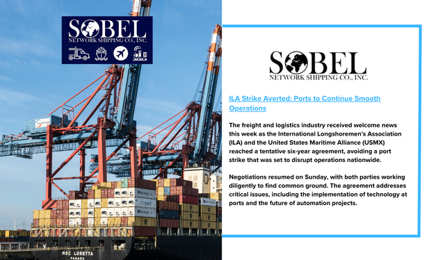 The freight and logistics industry received welcome news this week as the International Longshoremen’s Association (ILA) and the United States Maritime Alliance (USMX) reached a tentative six-year agreement, avoiding a port strike that was set to disrupt operations nationwide.