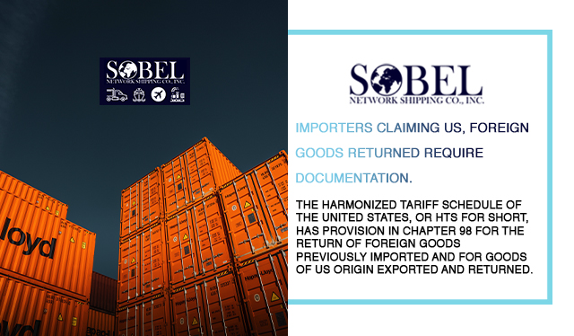 Importers claiming US, foreign goods returned require documentation. - Sobel Network Shipping Co., Inc.