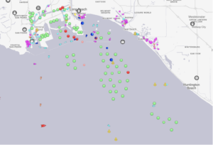 This image is from Marine Traffic, a website that monitors AIS data from ships at sea and was taken on Tuesday afternoon, February 2nd. Each of those green dots represents a ship at anchor waiting to get into a berth to unload. Some of those vessels have been at anchor for upwards of a week.
