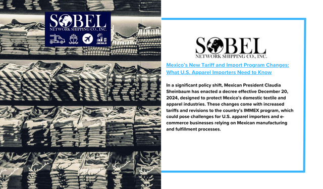 In a significant policy shift, Mexican President Claudia Sheinbaum has enacted a decree effective December 20, 2024, designed to protect Mexico’s domestic textile and apparel industries. These changes come with increased tariffs and revisions to the country’s IMMEX program, which could pose challenges for U.S. apparel importers and e-commerce businesses relying on Mexican manufacturing and fulfillment processes.