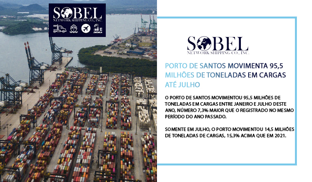 Somente em julho, o porto movimentou 14,5 milhões de toneladas de cargas, 15,3% acima que em 2021.
