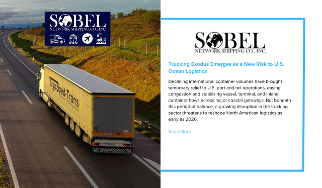 Declining international container volumes have brought temporary relief to U.S. port and rail operations, easing congestion and stabilizing vessel, terminal, and inland container flows across major coastal gateways. But beneath this period of balance, a growing disruption in the trucking sector threatens to reshape North American logistics as early as 2026.