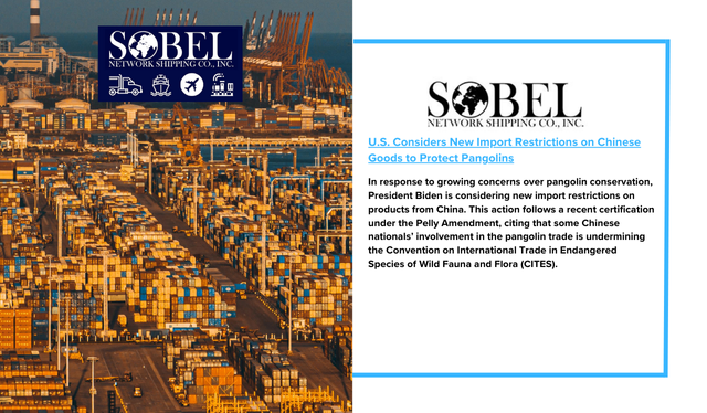 U.S. Considers New Import Restrictions on Chinese Goods to Protect Pangolins - Sobel Network Shipping Co., Inc.