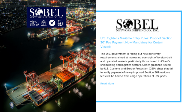 U.S. Tightens Maritime Entry Rules: Proof of Section 301 Fee Payment Now Mandatory for Certain Vessels - Sobel Network Shipping Co., Inc.