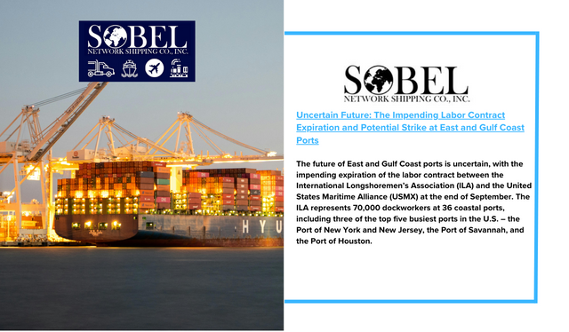 The future of East and Gulf Coast ports is uncertain, with the impending expiration of the labor contract between the International Longshoremen’s Association (ILA) and the United States Maritime Alliance (USMX) at the end of September. The ILA represents 70,000 dockworkers at 36 coastal ports, including three of the top five busiest ports in the U.S. – the Port of New York and New Jersey, the Port of Savannah, and the Port of Houston.