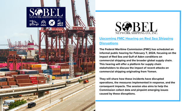 The Federal Maritime Commission (FMC) has scheduled an informal public hearing for February 7, 2024, focusing on the impact of Red Sea and Gulf of Aden conditions on commercial shipping and the broader global supply chain.